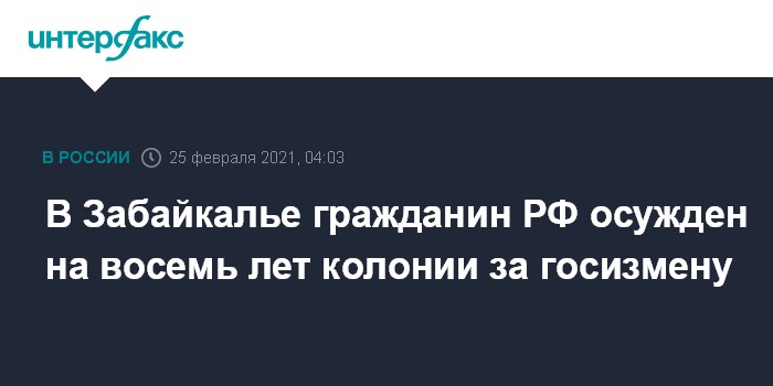 В Забайкалье гражданин РФ осужден на восемь лет колонии за госизмену