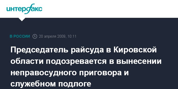 Москва. 20 апреля. ИНТЕРФАКС - Глава Следственного комитета при прокуратуре (СКП) РФ Александр Бастрыкин возбудил уголовное дело в отношении председателя Подосиновского районного суда Кировской области, подозреваемой в "вынесении заведомо неправосудного приговора" и "служебном подлоге".