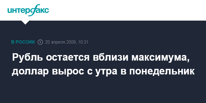 Рубль остается вблизи максимума, доллар вырос с утра в понедельник