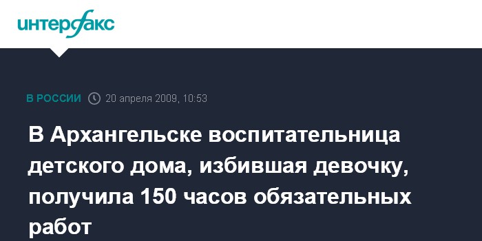 В Архангельске воспитательница детского дома, избившая девочку, получила 150 часов обязательных работ