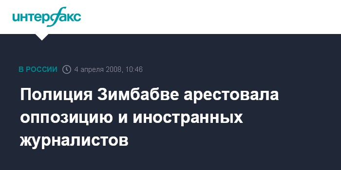 Вашингтон. 4 апреля. INTERFAX.RU - Правительственные силы Зимбабве начали действия по подавлению главной оппозиционной партии страны - Движения за демократические перемены (ДДП), которая выиграла парламентские выборы и утверждает, что ее лидер Морган Тсвангираи победил также на одновременно прошедших президентских выборах, передает в пятницу из Хараре телекомпания CNN.
