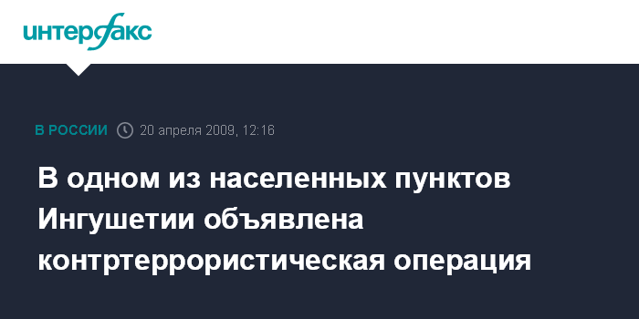 Москва. 20 апреля. INTERFAX.RU - Контртеррористическая операция объявлена населенном пункте Верхний Алкун (Республика Ингушетия) и близлежащем лесном массиве после получения информации о наличием там боевиков.