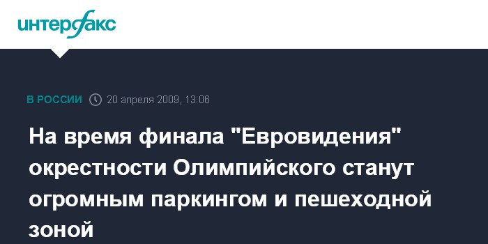 По словам собеседника "Интерфакса", пропуском для въезда в зону ограничения движения может стать либо билет на финал "Евровидения", либо специальный пропуск. "Для удобства гостей и зрителей конкурса в непосредственной близости от "Олимпийского" будет дежурить около 700 такси", - подчеркнул он.