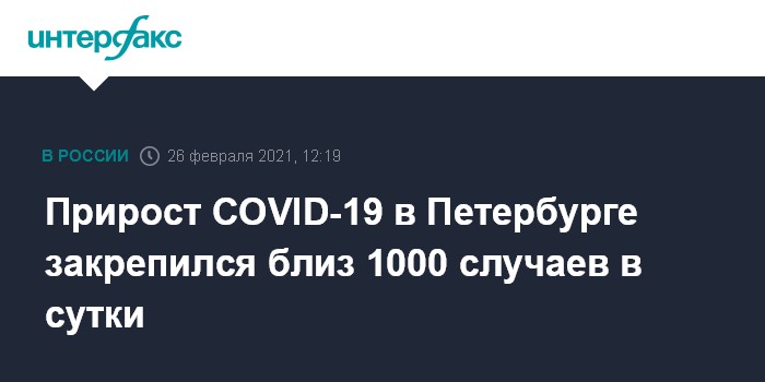Москва. 26 февраля. INTERFAX.RU - Темпы снижения заболеваемости COVID-19 в Петербурге замедлились, ежедневный прирост остановился на уровне в тысячу новых случаев, сообщила "Интерфаксу" начальник отдела эпидемиологического надзора городского управления Роспотребнадзора Ирина Чхинджерия.