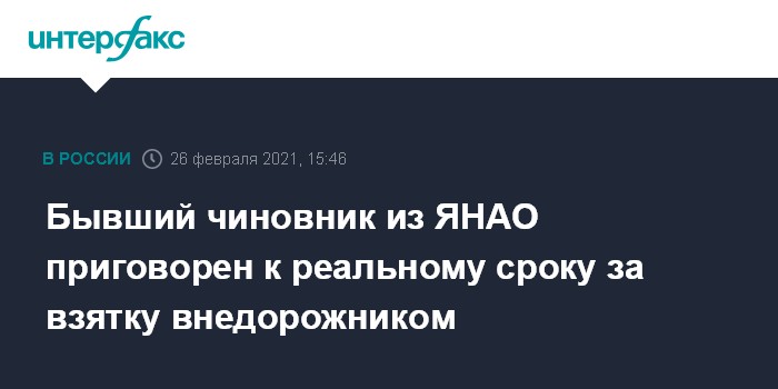 Москва. 26 февраля. INTERFAX.RU - В Тарко-Сале бывший чиновник администрации Пуровского района приговорен к восьми годам колонии и штрафу за получение взятки внедорожником, сообщили в управлении СК по Ямало-Ненецкому автономному округу.
