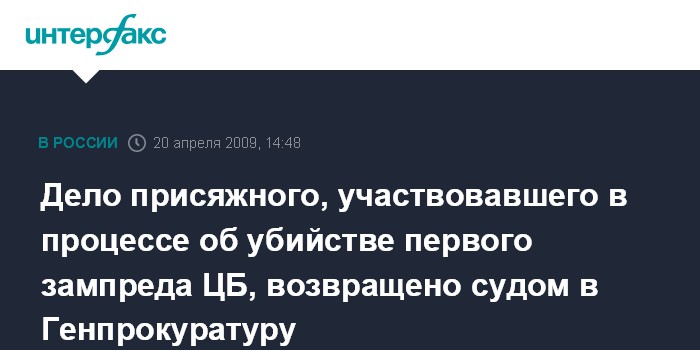 Дело присяжного, участвовавшего в процессе об убийстве первого зампреда ЦБ, возвращено судом в Генпрокуратуру