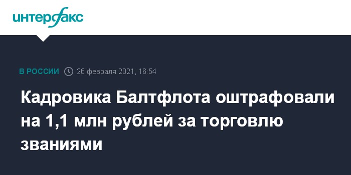 Кадровика Балтфлота оштрафовали на 1,1 млн рублей за торговлю званиями