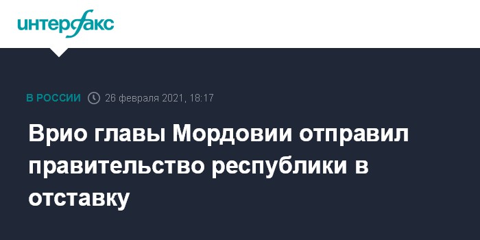 Москва. 26 февраля. INTERFAX.RU - Временно исполняющий обязанности главы Мордовии Артем Здунов объявил об отставке кабинета министров региона, сообщил оперштаб республики.