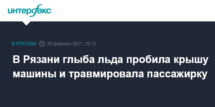 Москва. 26 февраля. INTERFAX.RU - Глыба льда упала в Рязани с надземного пешеходного перехода напротив Центрального автовокзала на проезжающий автомобиль, сообщила в пятницу пресс-служба СУ СКР по региону.