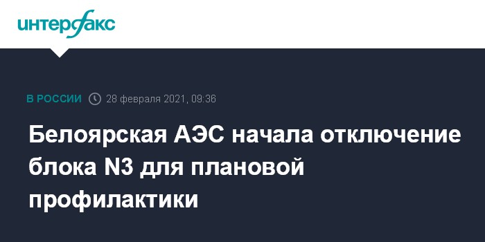 Москва. 28 февраля. INTERFAX.RU - Белоярская АЭС (Свердловская область) в воскресенье приступила к отключению от сети энергоблока N3 с реактором на быстрых нейтронах БН-600 АЭС для проведения очередных плановых мероприятий по перегрузке топлива, техническому обслуживанию и профилактическому ремонту оборудования.
