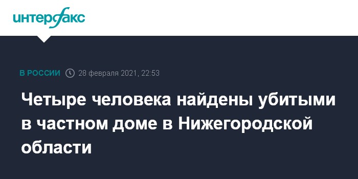 Днем 28 февраля в доме поселка Кудьма Кстовского района Нижнего Новгорода обнаружены погибшими 5-летний мальчик, его 41-летняя мать, 64-летний дедушка и 63-летняя бабушка.