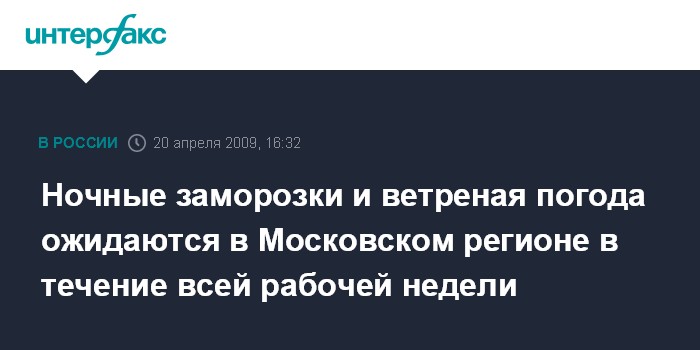 Ночные заморозки и ветреная погода ожидаются в Московском регионе в течение всей рабочей недели