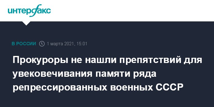 Прокуроры не нашли препятствий для увековечивания памяти ряда репрессированных военных СССР