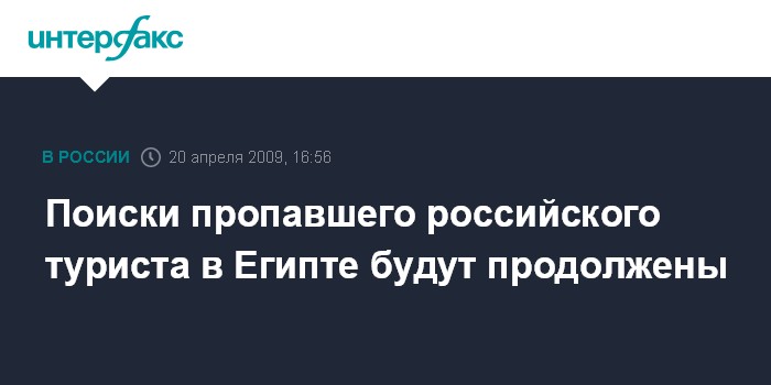 Москва. 20 апреля. INTERFAX.RU - Пограничники и туристическая полиция Египта продолжат поиски российского туриста Бориса Максимова, пропавшего в районе горы Моисея на Синае, сообщил агентству в понедельник Тимур Агаметов, вице-консул посольства России в Каире. По его словам, поиски велись сегодня целый день, пока следов пропавшего туриста не обнаружено.