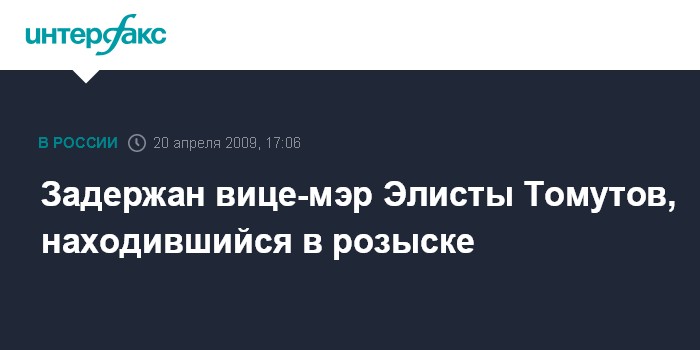 Москва. 20 апреля. INTERFAX.RU - Сотрудники УБЭП МВД Калмыкии задержали вице-мэра Элисты по строительству и капитальным вложениям Владимира Томутова, находившегося в международном розыске.