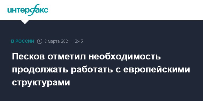 Песков отметил необходимость продолжать работать с европейскими структурами