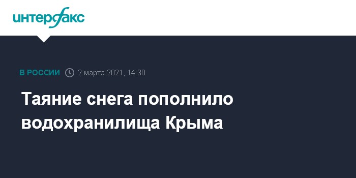Москва. 2 марта. INTERFAX.RU - Порядка 48,3 млн кубометров воды накопилось к началу весны в водохранилищах Крыма естественного стока, - это на 11,6 млн кубов больше, чем к началу зимы, подсчитали синоптики региона.