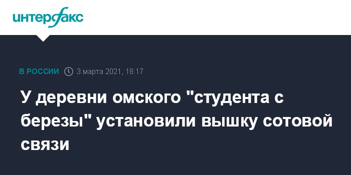 Москва. 3 марта. INTERFAX.RU - Вышка сотовой связи появилась неподалеку от деревни омского студента Алексея Дудоладова, который в ноябре пожаловался губернатору на плохую интернет-связь, забравшись на березу, - сигнал получалось поймать только там.