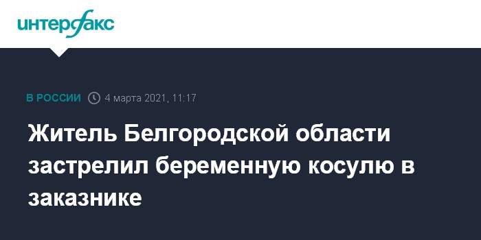 Москва. 4 марта. INTERFAX.RU - Житель Старого Оскола, застреливший косулю в заказнике, стал фигурантом уголовного дела, сообщает пресс-служба УМВД России по Белгородской области.