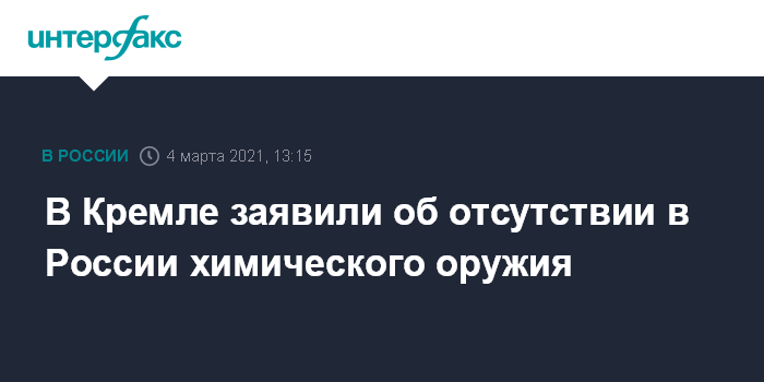 В Кремле заявили об отсутствии в России химического оружия