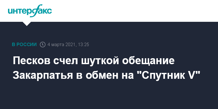 В ходе общения с журналистами пресс-секретаря президента РФ Дмитрия Пескова спросили, на каких условиях российская вакцина может быть поставлена Словакии, и напомнили шутку премьер-министра этой страны о Закарпатье.