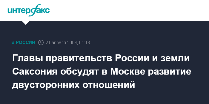 Главы правительств России и земли Саксония обсудят в Москве развитие двусторонних отношений