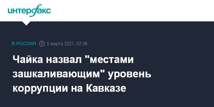 Москва. 5 марта. INTERFAX.RU - Ситуация с коррупцией в Северо-Кавказском федеральном округе (СКФО) требует пристального внимания, заявил полномочный представитель президента РФ в СКФО Юрий Чайка в интервью, опубликованном в пятницу в "Российской газете".