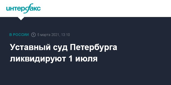 Москва. 5 марта. INTERFAX.RU - Комитет по законодательству Заксобрания Петербурга поддержал законопроект об упразднении Уставного суда региона, сообщил в Telegram глава комитета Денис Четырбок. Он уточнил, что суд будет упразднен 1 июля 2021 года.