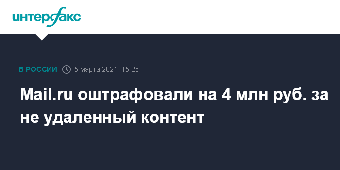 Mail.ru оштрафовали на 4 млн руб. за не удаленный контент