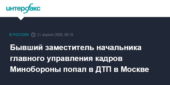 Москва. 21 апреля. INTERFAX.RU - В Москве в ДТП попал бывший первый заместитель начальника главного управления кадров министерства обороны генерал-лейтенант Николай Васильев.