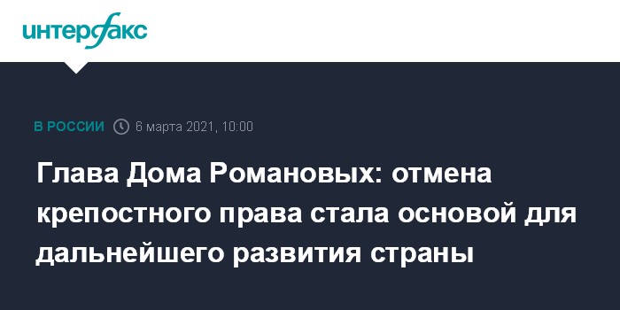 Глава Дома Романовых: отмена крепостного права стала основой для дальнейшего развития страны