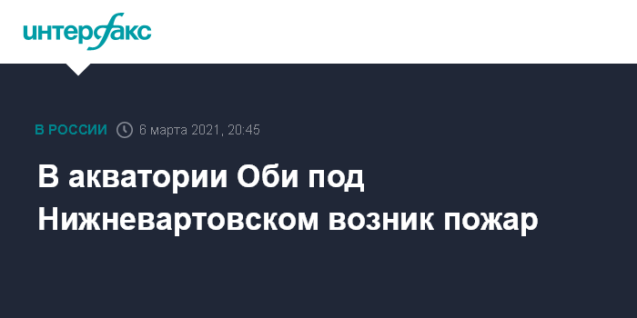 Москва. 6 марта. INTERFAX.RU - В субботу под Нижневартовском было обнаружено возгорание в акватории реки Обь, сообщила глава Росприроднадзора Светлана Радионова.