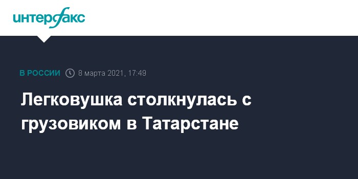 Москва. 8 марта. INTERFAX.RU - Легковой автомобиль столкнулся с грузовым фургоном в Алексеевском районе Татарстана, есть погибшие и пострадавший.