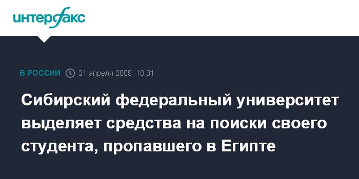 Сибирский федеральный университет выделяет средства на поиски своего студента, пропавшего в Египте