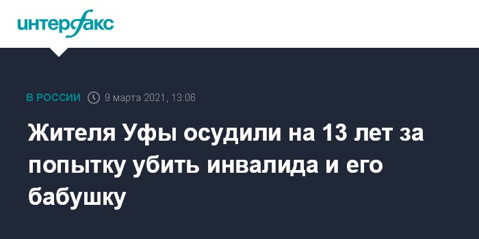 Жителя Уфы осудили на 13 лет за попытку убить инвалида и его бабушку