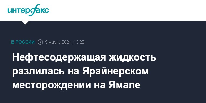Нефтесодержащая жидкость разлилась на Ярайнерском месторождении на Ямале