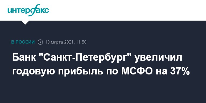 Москва. 10 марта. INTERFAX.RU - Банк "Санкт-Петербург" в IV квартале 2020 года увеличил чистую прибыль по МСФО в 1,9 раза - до 4,5 млрд рублей против 2,4 млрд рублей годом ранее. Чистая прибыль банка за весь 2020 год составила рекордные 10,8 млрд рублей, что на 37% выше результата за 2019 год (7,9 млрд рублей).