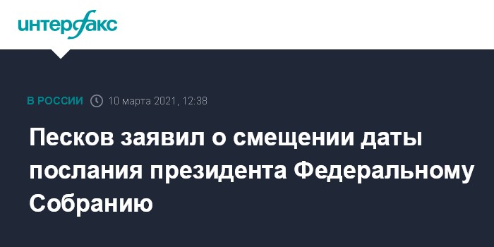 Ранее СМИ сообщали, что Путин может огласить ежегодное послание в конце марта - начале апреля. Представитель Кремля этого не подтверждал.