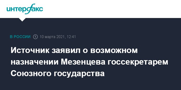 Москва. 10 марта. INTERFAX.RU - Покидающий должность посла России в Белоруссии Дмитрий Мезенцев, как ожидается, сменит Григория Рапоту на посту госсекретаря Союзного государства, сообщил "Интерфаксу" источник в российском парламенте.