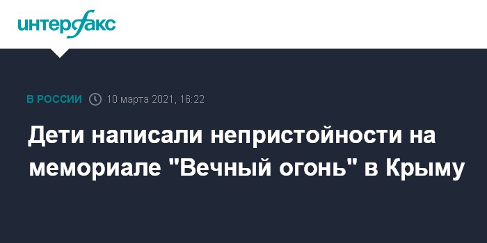 Москва. 10 марта. INTERFAX.RU - Подростки написали непристойные слова на мемориале "Вечный огонь" в городе Саки в Крыму, сообщил в среду глава администрации курорта Александр Овдиенко.