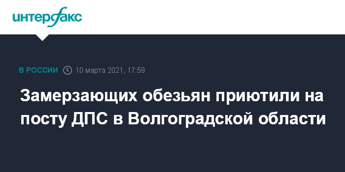 Замерзающих обезьян приютили на посту ДПС в Волгоградской области