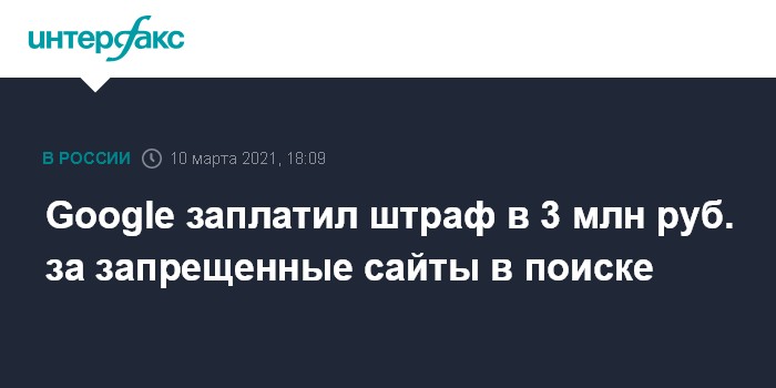 Google заплатил штраф в 3 млн руб. за запрещенные сайты в поиске