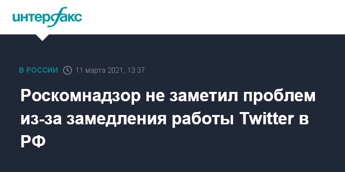 Ранее в четверг замглавы ведомства Вадим Субботин сообщил "Интерфаксу", что сбои в работе ряда интернет-ресурсов в РФ не связаны с действиями Роскомнадзора по замедлению работы Twitter, а замедление работы сервиса идет в штатном режиме. Он выразил надежду на диалог с компанией и назвал абсурдными обвинение в адрес РКН со стороны Twitter в ограничении свободы дискуссии в интернете. Кроме того, Субботин сообщил, что замедление работы сервиса в РФ никак не связано с размещаемой в нем информацией о несанкционированных протестных акциях.