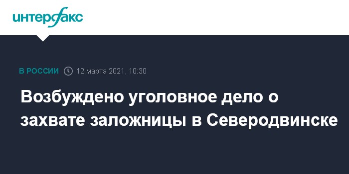 Москва. 12 марта. INTERFAX.RU - По факту захвата в заложники сотрудницы микрокредитной организации в Северодвинске возбуждено уголовное дело, сообщили в СК. Его расследуют по п. "г" ч.2 ст. 206 УК (захват заложника, совершенный с применением оружия).