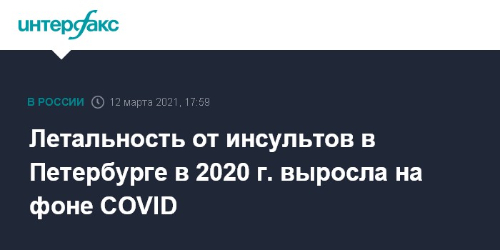 Летальность от инсультов в Петербурге в 2020 г. выросла на фоне COVID