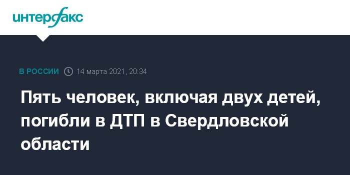 Пять человек, включая двух детей, погибли в ДТП в Свердловской области