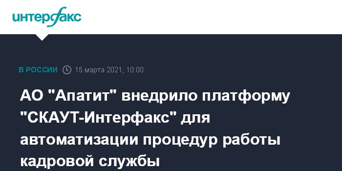 АО "Апатит" внедрило платформу "СКАУТ-Интерфакс" для автоматизации процедур работы кадровой службы