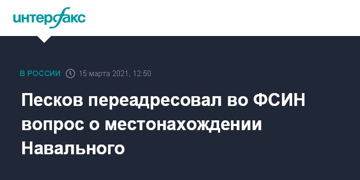 Москва. 15 марта. INTERFAX.RU - В администрации президента РФ не располагают информацией о местонахождении оппозиционера Алексея Навального, но этот вопрос и не входит в ее компетенцию, заявил пресс-секретарь президента Дмитрий Песков.