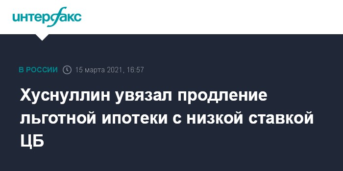 Затем она сказала "Известиям", что льготная ипотека в качестве антикризисной меры может быть продлена в 24 регионах страны с не восстановившимся спросом на жилье. Комментируя эти слова, Хуснуллин уточнил, что правительство готово рассмотреть такие предложения. Премьер-министр Михаил Мишустин поручил Минфину, Минстрою и ЦБ подготовить предложения по дальнейшей реализации льготных ипотечных программ до 15 апреля.