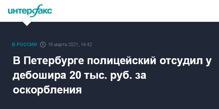 Москва. 16 марта. INTERFAX.RU - Кировский районный суд Петербурга взыскал с местного жителя компенсацию морального вреда в размере 20 тыс. рублей в пользу оскорбленного сотрудника полиции, сообщает объединенная пресс-служба судов города во вторник.
